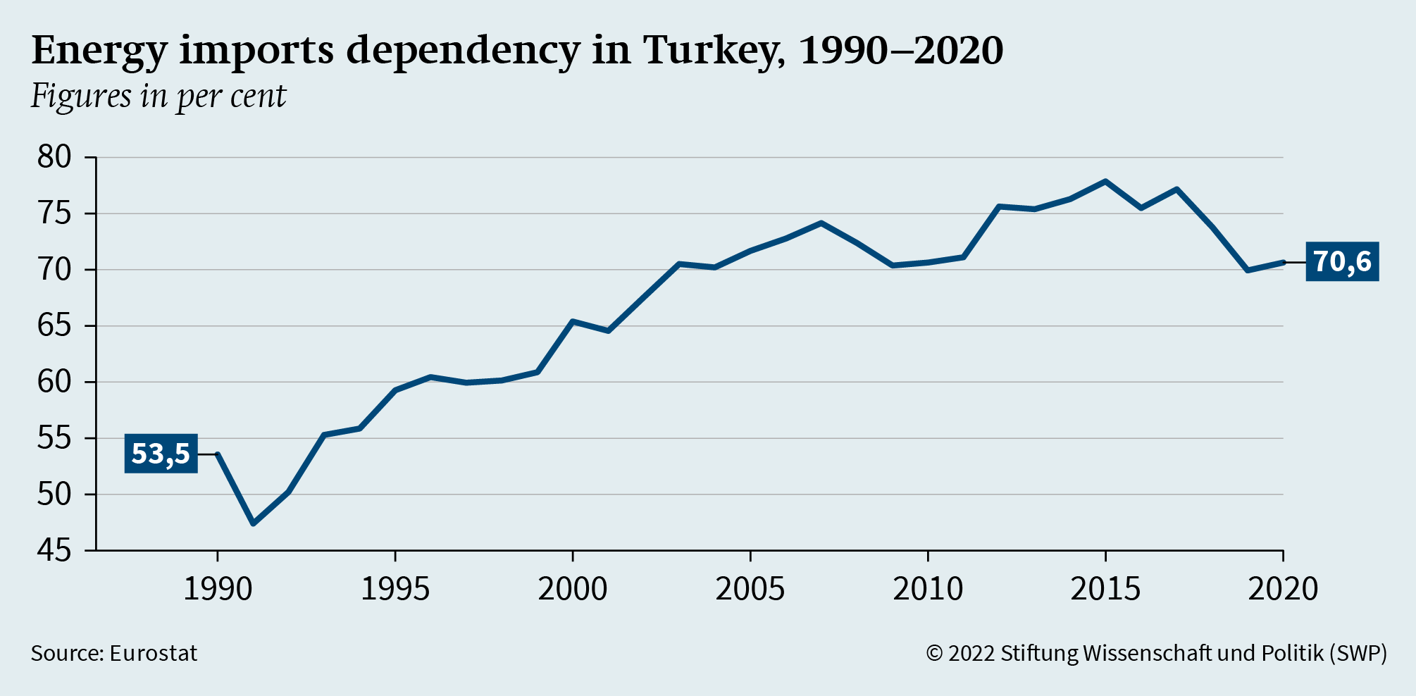 Political tensions and uneasy relations between the two sides have obstructed the deepening of relations in the field of energy during the last years. The process of Turkey’s accession to the EU, which had also given impetus and provided a framework for energy cooperation, is at a complete standstill. The EU-Turkey High Level Energy Dialogue – an important platform to deepen energy cooperation between the EU and Turkey – was launched on 16 March 2015 and has been blocked since 2016 due to the domestic political situation in Turkey and tensions between Ankara and the EU.