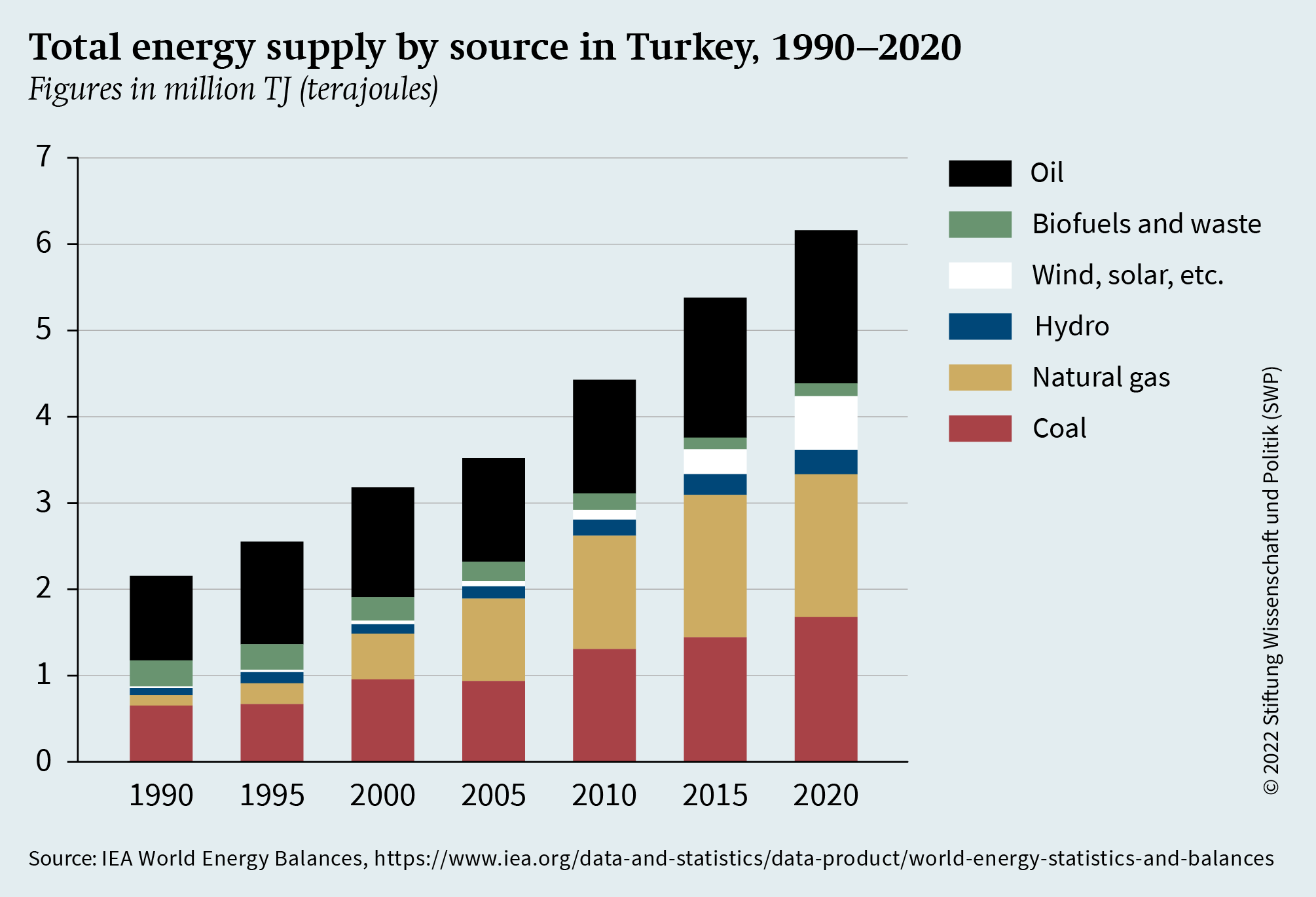Turkey finally ratified the Paris Agreement in October 2021 and set a net-zero emissions target for the year 2053, both of which are positive developments. However, three quarters of Turkey’s total energy consumption still comes from fossil fuels, and Ankara has not set a coal phase-out date. Turkey does not have a clear strategy for the decarbonisation of its energy, or its economy in general.