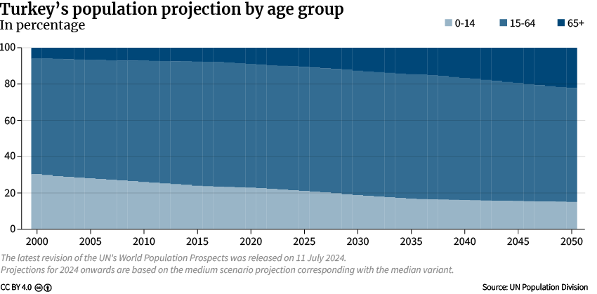Furthermore, the Turkish population is young when compared to European countries. In 2023, those aged 14 and under constituted approximately 23 per cent of the total population (Figure 4). Also, in 2023 Turkey registered the lowest labour force participation rate of all countries in the Organisation for Economic Co-operation and Development (OECD). The Turkish Statistical Institute (TurkStat) reported for October 2023 a labour force participation rate of 53.1 per cent, compared to the OECD average of more than 70 per cent.